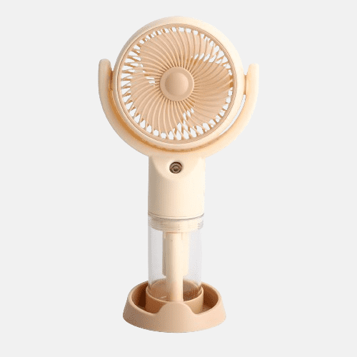 Yellow Mist Fan - Stay cool and comfortable anywhere with our handheld mist fan. Perfect for outdoor adventures or everyday use, it combines gentle breezes with a refreshing mist for instant relief from the heat.